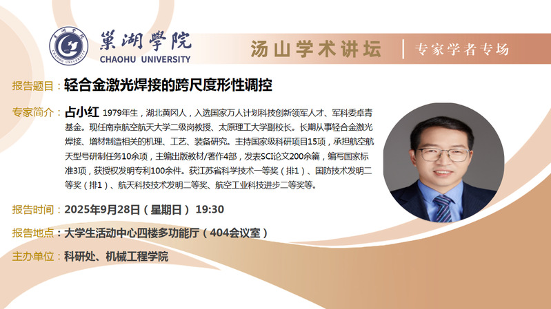 • 9月17日:巢湖學院電子工程學院赫丙玲副教授講座